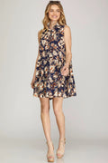 This sleeveless button-up dress features a vibrant leaf print, perfect for summer outings. Its tiered design adds a playful touch, while the lightweight woven fabric ensures comfort and breathability. Ideal for casual gatherings or beach days, this dress combines style and ease effortlessly.