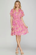HOT PINK COLLARED DROP SHOULDER WOVEN MINI DRESS