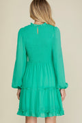 Add a splash of fun to your wardrobe with the Jade Smoked Tiered Mini Dress. Its long sleeves and tiered layers create a lively, flirty look, while the rich jade color brings a fresh, vibrant vibe. Perfect for playful days and spirited nights, this dress is your go-to for effortless style with a twist.
