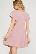 PINK SHORT SLEEVES WASH WOVEN MINI DRESS