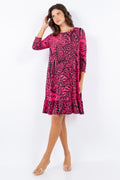 PINK TROPICAL PRINT BABYDOLL DRESS WITH SIDE POCKETS