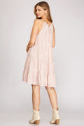 ROSE STRIPPED SLEEVELESS HALTER NECK MINI DRESS